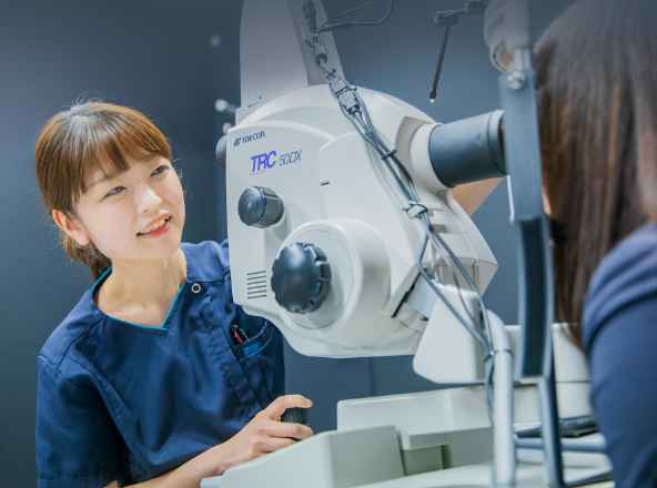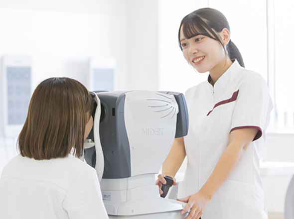 100種類を超える検査を用いて、医師の診断や治療に必要なデータを提供します。視力検査や眼鏡、コンタクトレンズ処方検査、手術前検査など患者さんに合わせて様々な検査を行います。