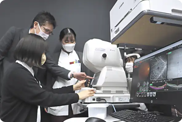 最先端の検査機器やICTを活用した環境で、最新の眼科医療を学習。選択制のステップアップゼミで資格+αの技術と知識を身につけます。