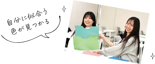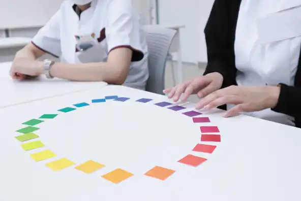 色覚検査の枠を出て、ユニバーサルカラーや色使いに関する知識を深めます。また、自分に似合う色や好きな色など、色と環境を学びます。